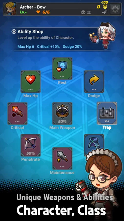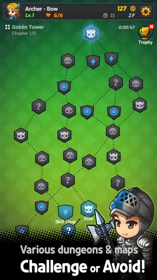 You become a hero of several classes and have to fight and survive in the dungeon "Goblin Tower" of Rogue.