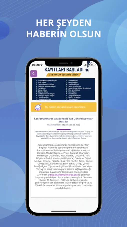 Uygulama Kahramanmaraş Büyükşehir Belediyesi tarafından gençler için geliştirilmiş olan bir mobil uygulamadır. Bu uygulama ile gençler haberlerden, etkinliklerden ve haberlerden haberdar olabileceklerdir ve uygulamanın sunduğu ayrıcalıklardan faydalanabileceklerdir.