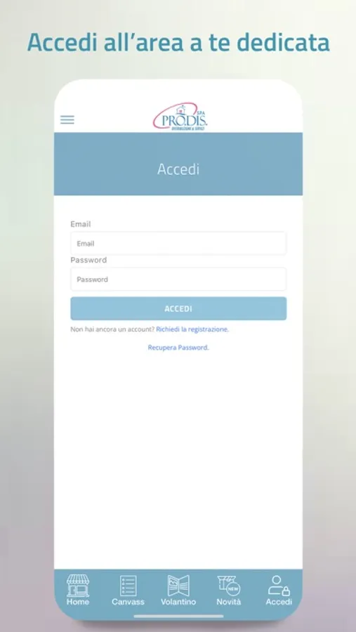 Benvenuti nell’App B2B dedicata ai clienti Pro.Dis. S.p.a.: grazie a questa App i clienti potranno accedere al nostro listino ed effettuare ordini, vedere lo storico e molto altro. Se sei nostro cliente scaricala ed accedi con il tuo account, altrimenti visita https://www.pro-dis.it