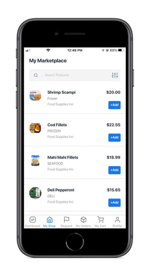 2. Setup your products – Sell/Purchase You can setup your products and also have the capability to set buyer specific pricing. Once connected all of your buyers can purchase from you through MyBiZSquare. Buyers will see one shopping page with the products from all their vendors on one page, without having to worry about multiple ordering systems/processes.