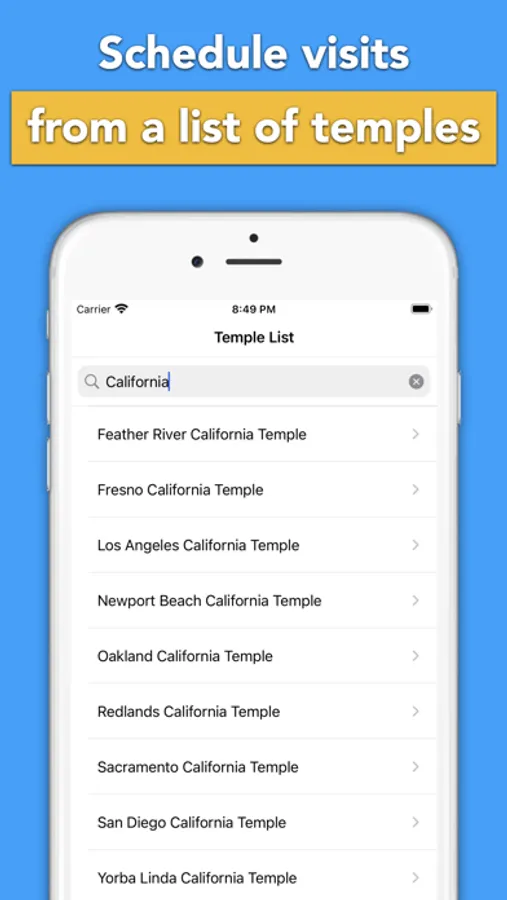 * Search for your temple by name and view associated details and schedules