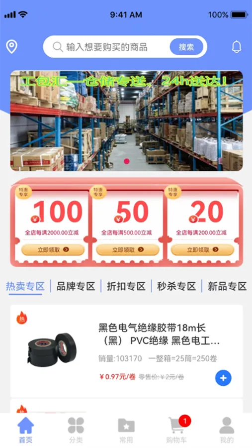 工包汇是集电线电缆、五金工具、涂料防水、劳保卫浴、电动工具、电气开关等建筑产品为一体的超大型批发商城,公司员工100多人,仓储面积12000多平方,自建车队配送车辆40余辆,江浙沪皖无死角配送。公司代理几十个业内知名品牌,产品物美价廉,品类齐全,服务一流,自有车队配送,自有仓库库存,五金建材一站式采购平台。