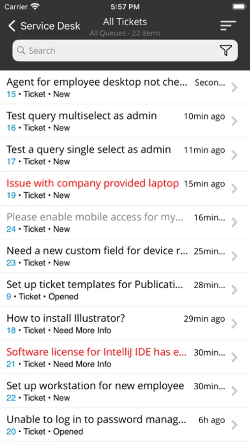 • Create, review, update, clone, delete, and resolve a service desk ticket