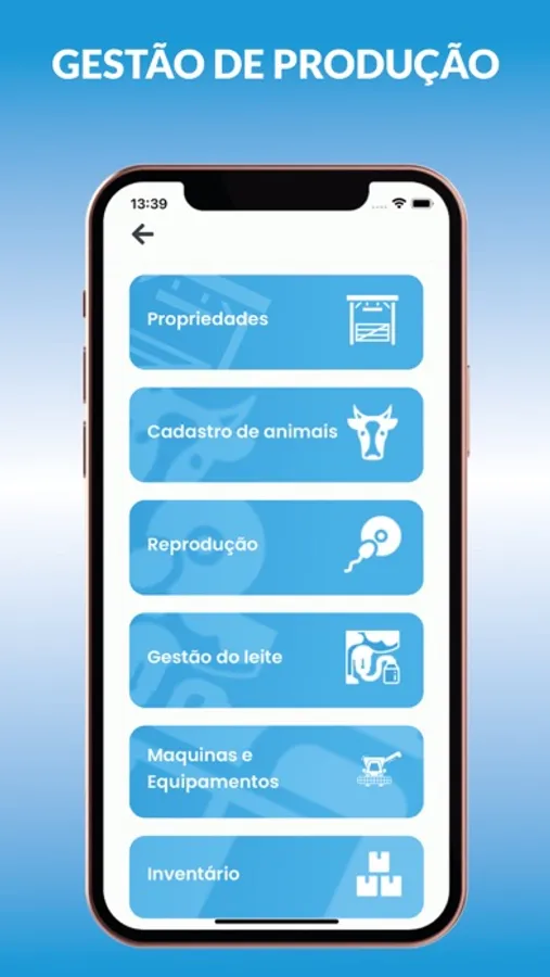 Sistema de gerenciamento completo, com aproveitamento de terra, controle de reprodução, gestão de leite, parâmetros de qualidade, depreciação de maquinas, inventario e fluxo de caixa. Nosso aplicativo também conta com um sistema de cotação que proporciona economia e agilidade nos processos de compra.
