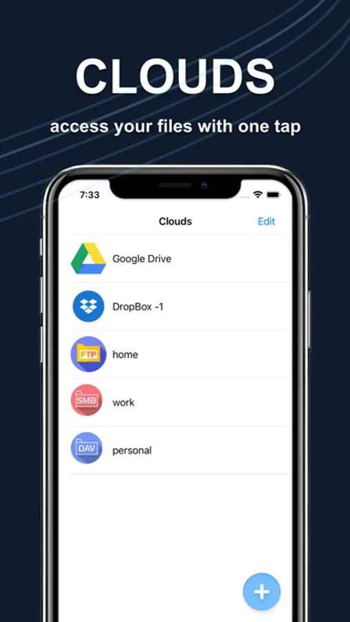 - Multiple clouds (Dropbox, Google Drive, FTP, SMB, WEBDAV and more)