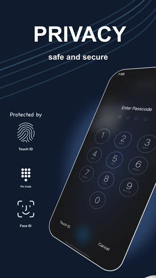 - Passcode protect files ( Touch ID, Face ID Supported )