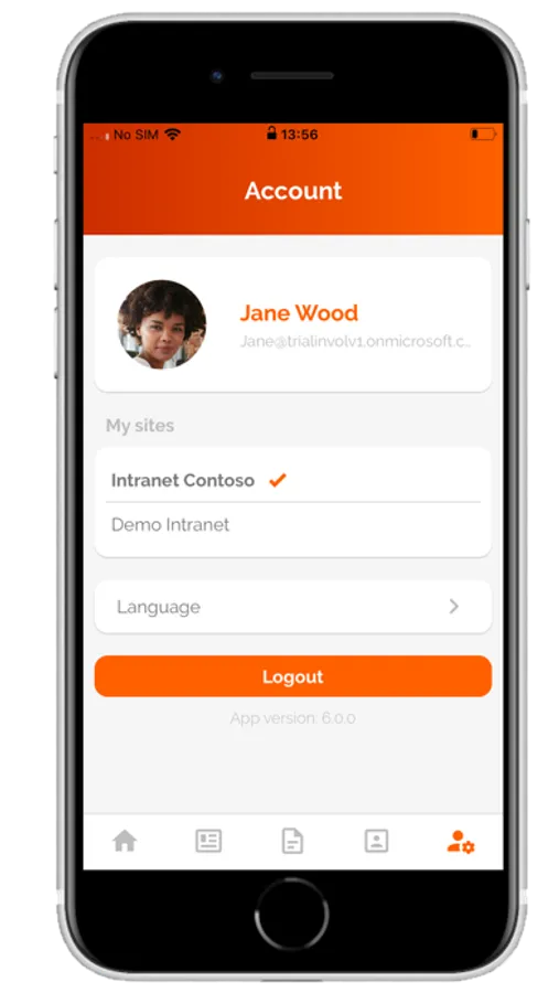 Through the More tab you get access to your specific app configured links in your Intranet solution. Enable push notifications to get