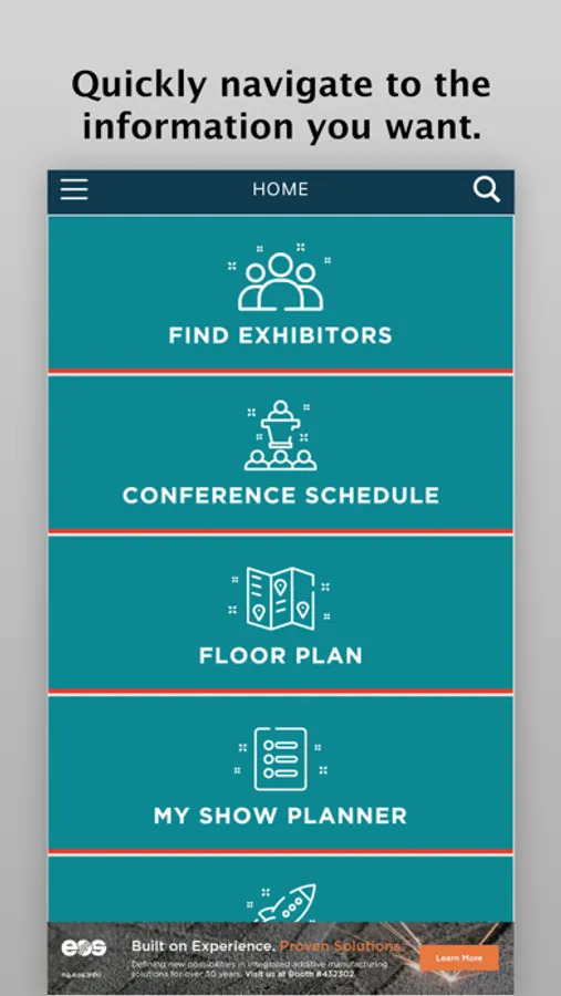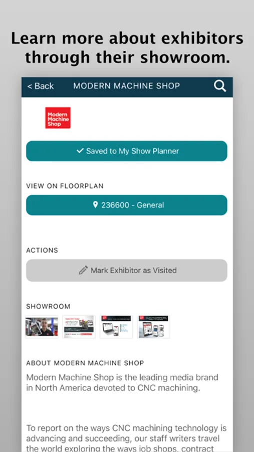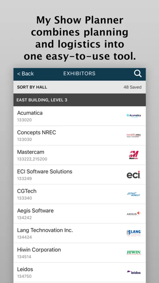 • Access your entire MyShow Planner on your mobile device — agenda, favorite exhibitors, favorite products, conference speakers