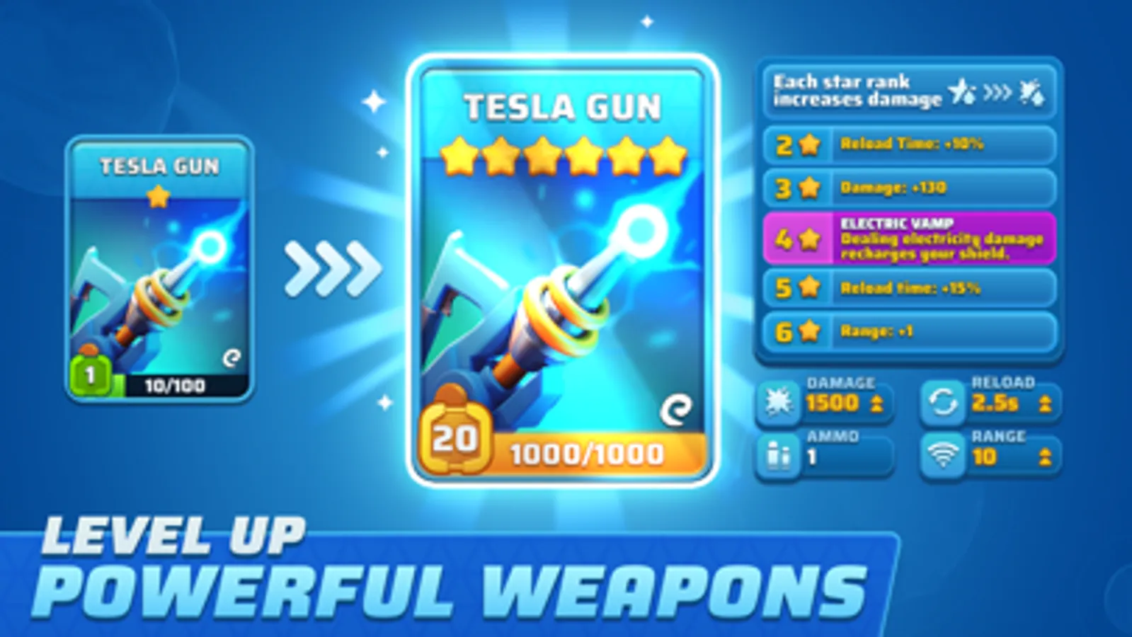 Customize and upgrade your characters! Shoot your enemy, it will improve your hero’s base stats, as well as their Ultimate ability to win . At level 30 you unlock Talents, which will allow you to get new and exciting bonuses.