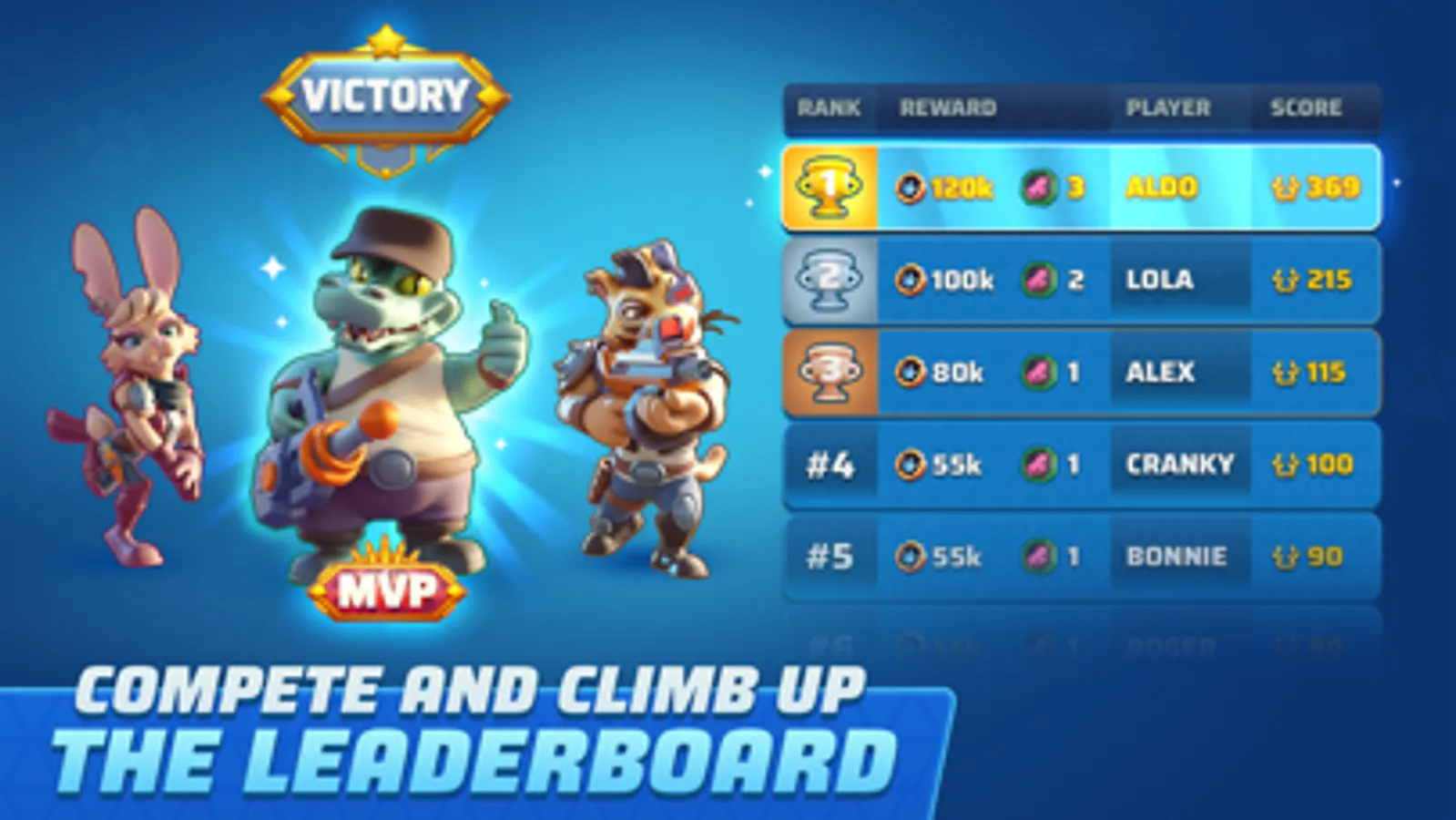 Battle other players real-time in Free For All arena matches or invite your friends and join others to test your teamwork in the upcoming 3v3 Team Game modes like Team Clash, Killstreak, Coop vs AI, and the battle arena.