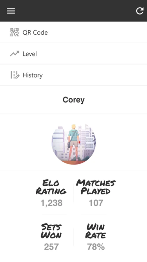 Anyone, of any ability, can become a StreetTT player and any two players can begin playing on any table. Players scan each other’s QR code to print their match result to a table, giving each player an Elo rating and a ranking by table, city, country, world. As players submit more match results against new opponents they are awarded higher levels in the game.