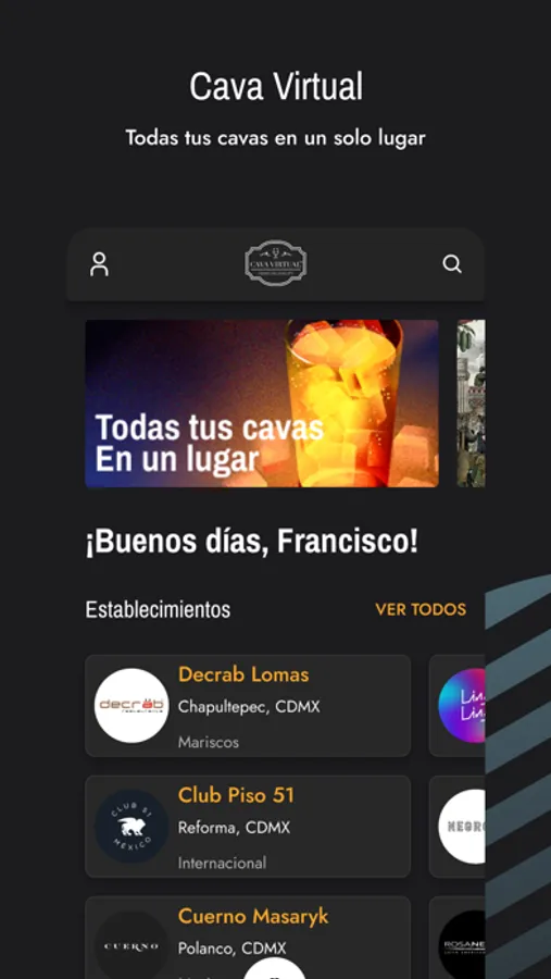- En el restaurante de tu elección, pide a tu mesero que abra tu CAVA VIRTUAL