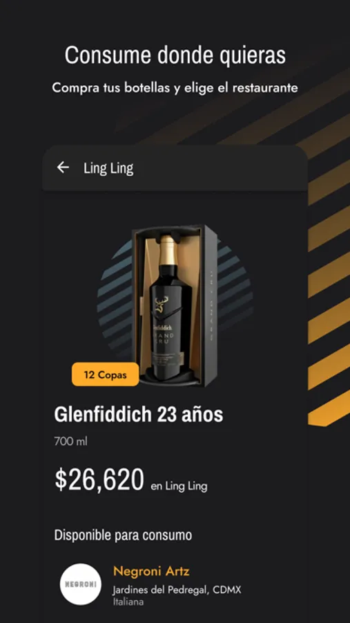 Disfruta de la primera aplicación para comprar Vinos, Destilados y Licores por botella y canjéalos por copa en los restaurantes mas importantes de México y próximamente del mundo. Es muy fácil de usar y tendrás siempre el control total de tus consumos.