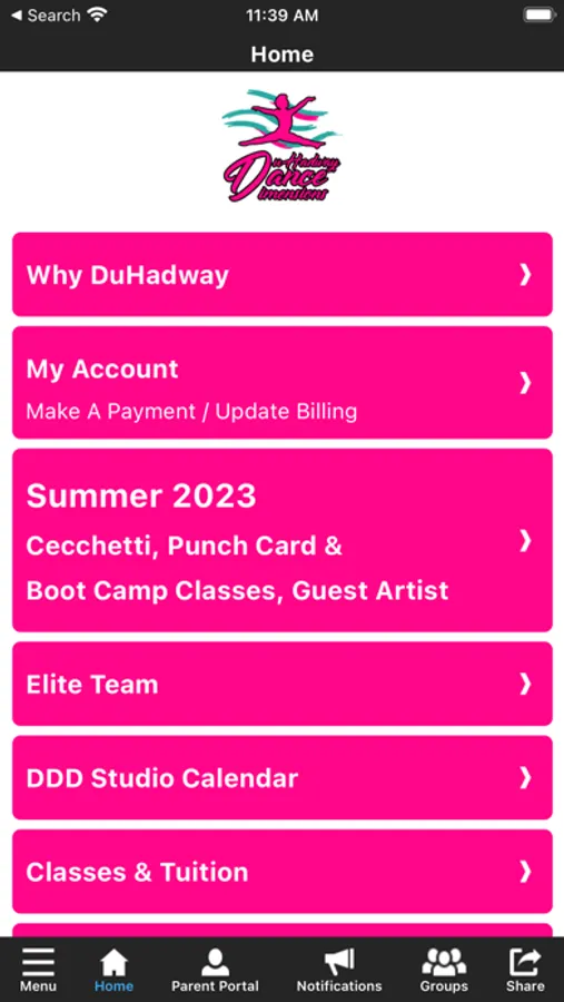 The DuHadway Dance Dimensions app allows you to manage your account with ease, register for classes, special events and most all things DDD. You'll also receive important notifications about class changes, closings, registration openings, special announcements, and upcoming events.