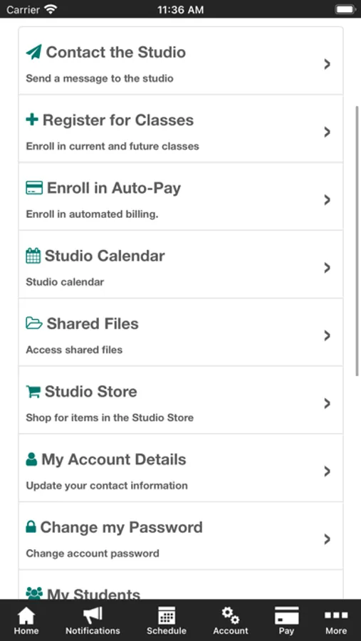 The DuHadway Dance Dimensions app is an easy-to-use, on-the-go way to access everything DuHadway Dance has to offer right from your smartphone.