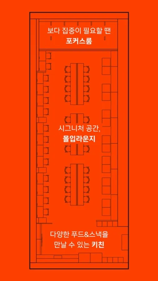 카페, 스터디 카페, 기존 공유 오피스는 조금 아쉽고, 일하기에도 공부하기에도 좋은 공간을 찾으셨던 분들이라면, 생동감과 차분함이 공존하는 몰입의시간에서 공간과 시간 제약 없이 나만의 몰입 공간을 확보하여 최고의 능률을 발휘해보세요!