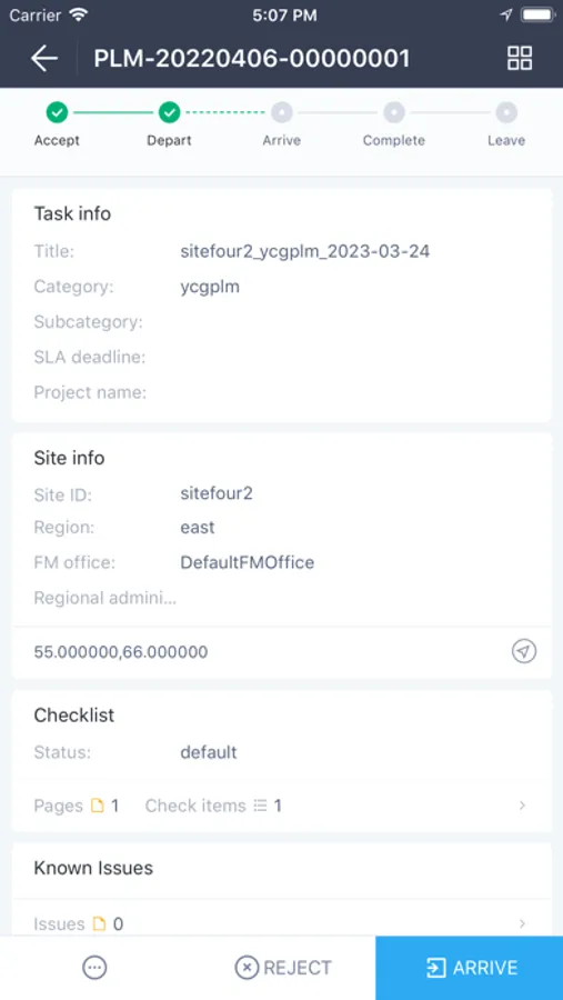 Supports information query such as work order SLA status, site location query, and historical work orders on the same site. You can find the exact location of the site where the task is located by viewing the map, and navigate to the destination.