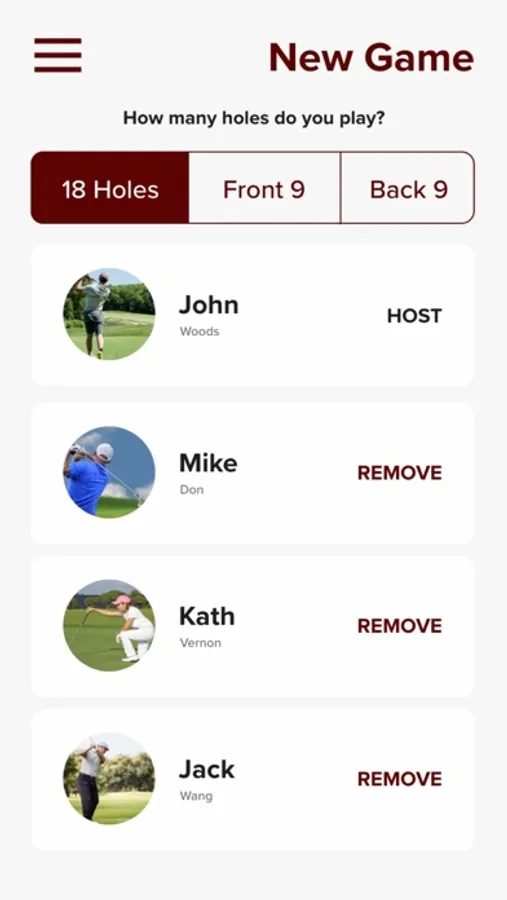- 3 different game options including 18-Hole, Front 9-Hole, and Back 9-Hole