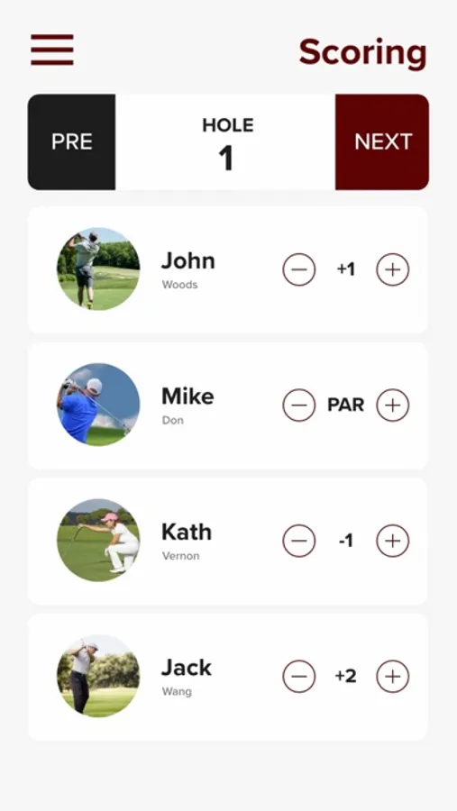 - Record each stroke staring from the Par score(the predetermined number of strokes)