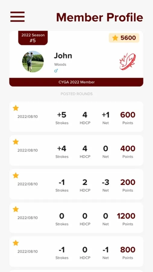 - Your photos, HDCP, the number of strokes, and points stored in your profile