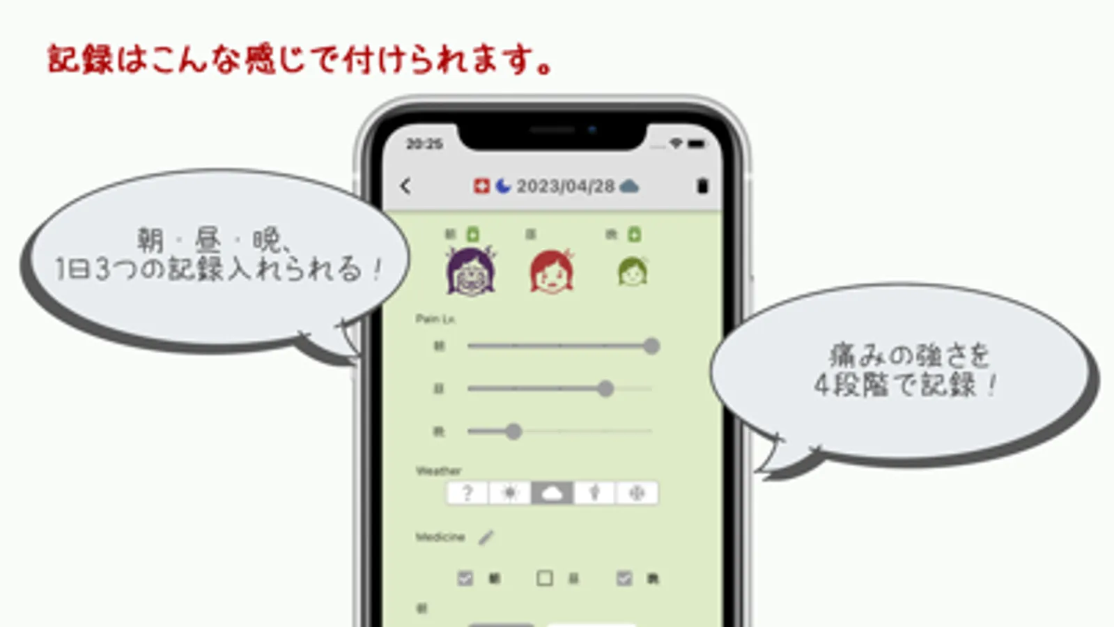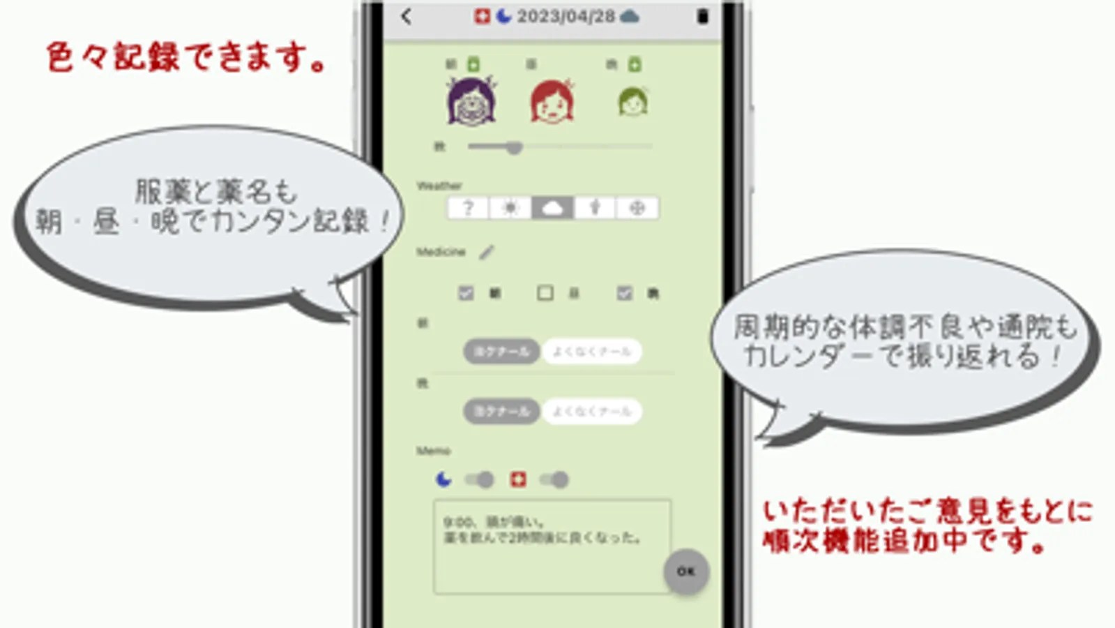 In addition to the much-requested three daily headache records, you can now also manage periodic physical condition records!