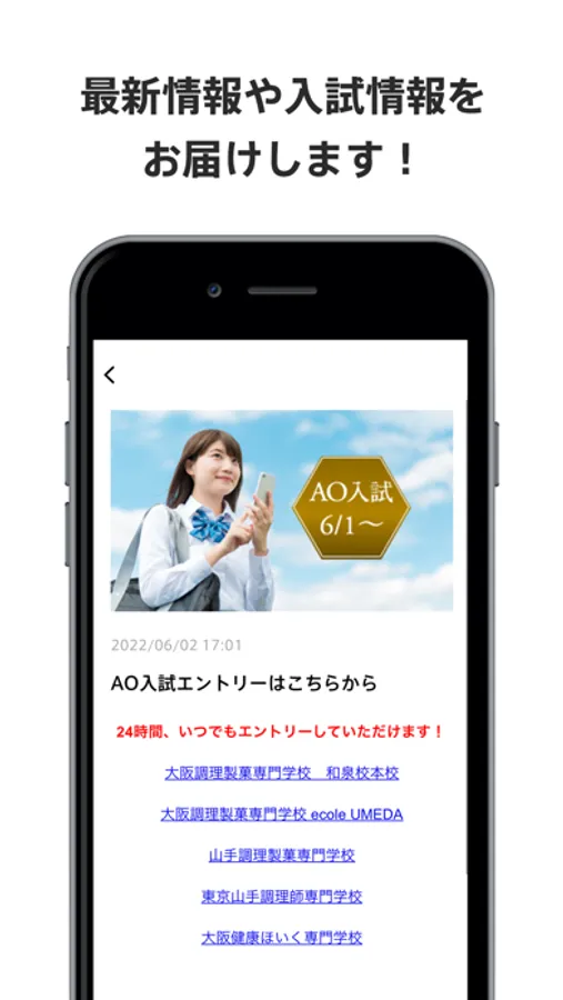・学生によるレストランやショップ販売実習などのイベント情報もお届けします!