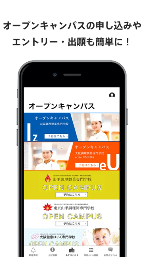 ・オープンキャンパスの申し込みやネット出願登録等も簡単に!