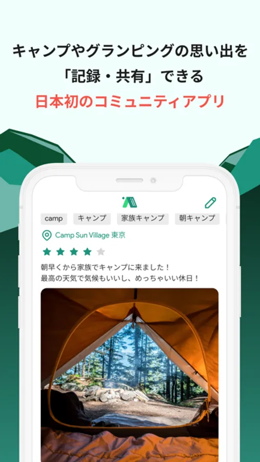 ■キャンプやグランピングの思い出を「記録・共有」できるアプリ