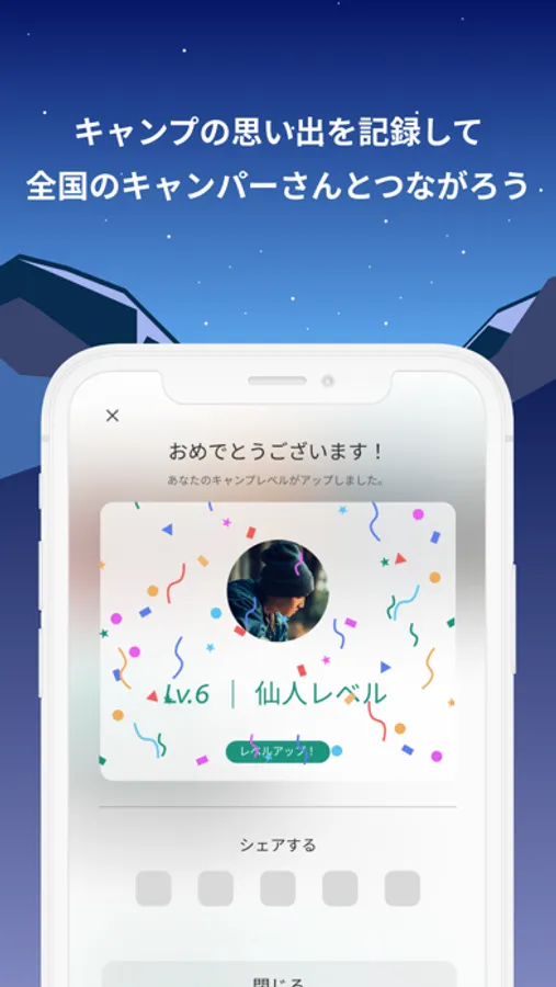 ■キャンプを記録するほど、プロフィールの「キャンパー レベル」がアップ