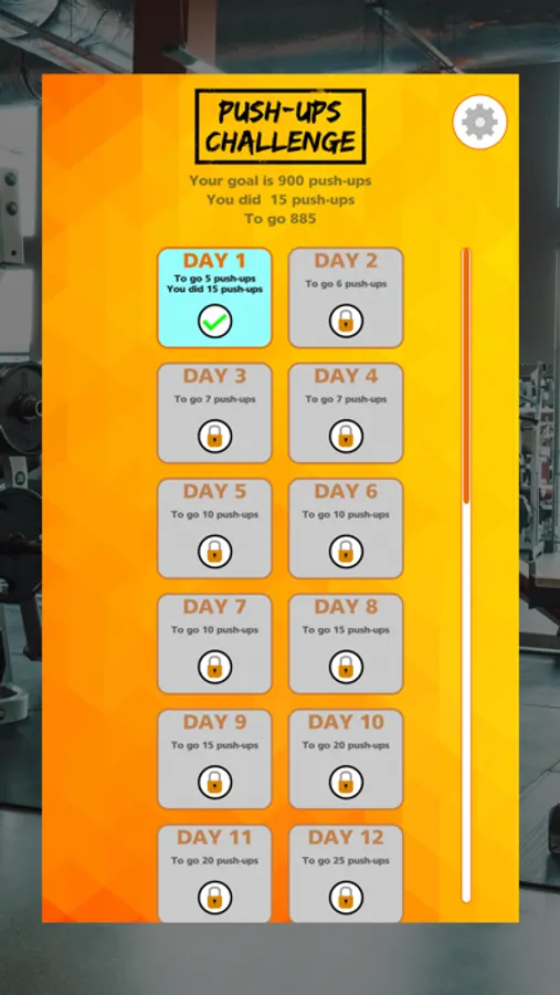 And the progressive programme means that every day the number of push-ups that you need to do increases. You will start with a minimum amount per day, and the difficulty will slowly increase.