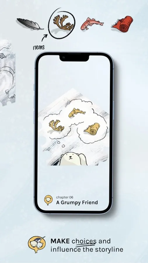- As you play through, you’ll have to choose between items to help our cute little polar bear on his journey - the choices you make influence what happens!