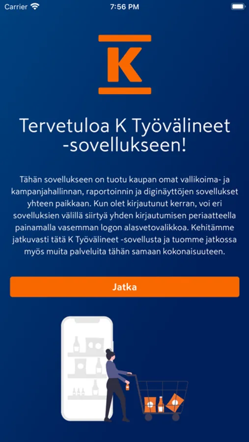 Tässä sovelluksessa on K-ryhmän kaupan K-Työvälineet tuotu mobiiliin helposti saataville. Sovelluksiin kirjaudutaan samoilla tunnuksilla kuin muihinkin Keskon palveluihin.