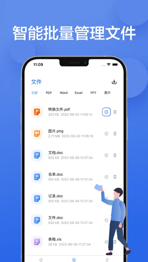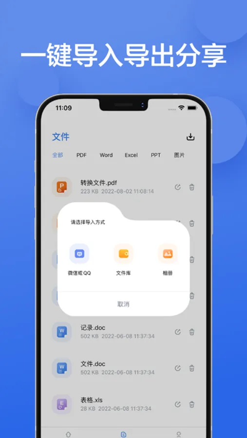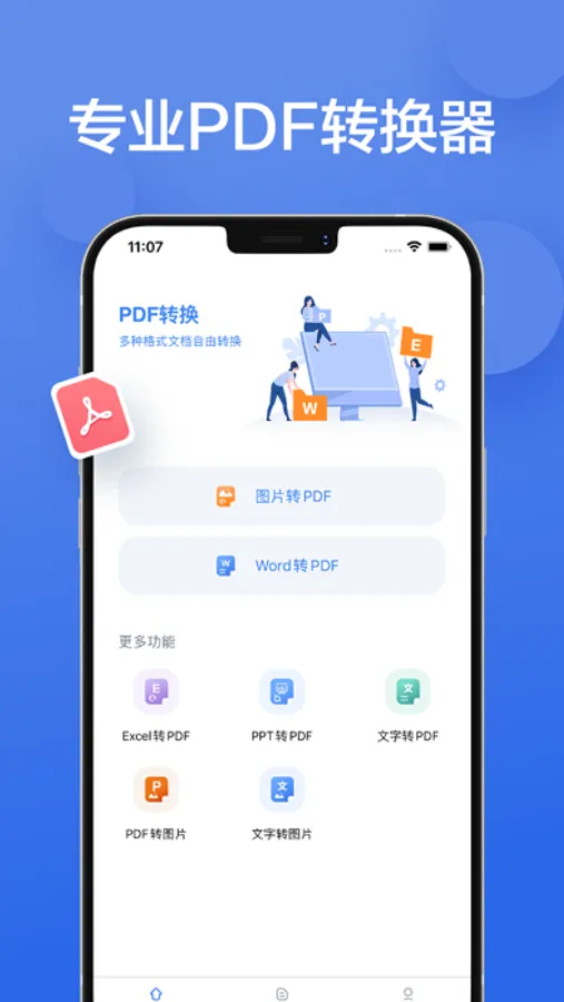PDF转换器是一款专业手机文档格式转换器,支持PDF与Word、Excel、PPT多种文件格式相互转换,支持快捷分享文件等功能,满足您高效移动办公需求。
