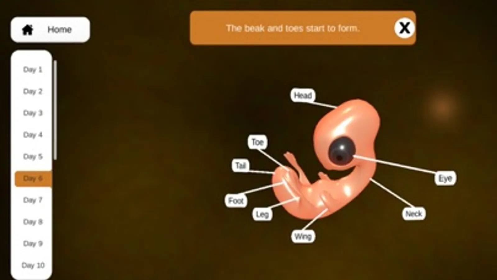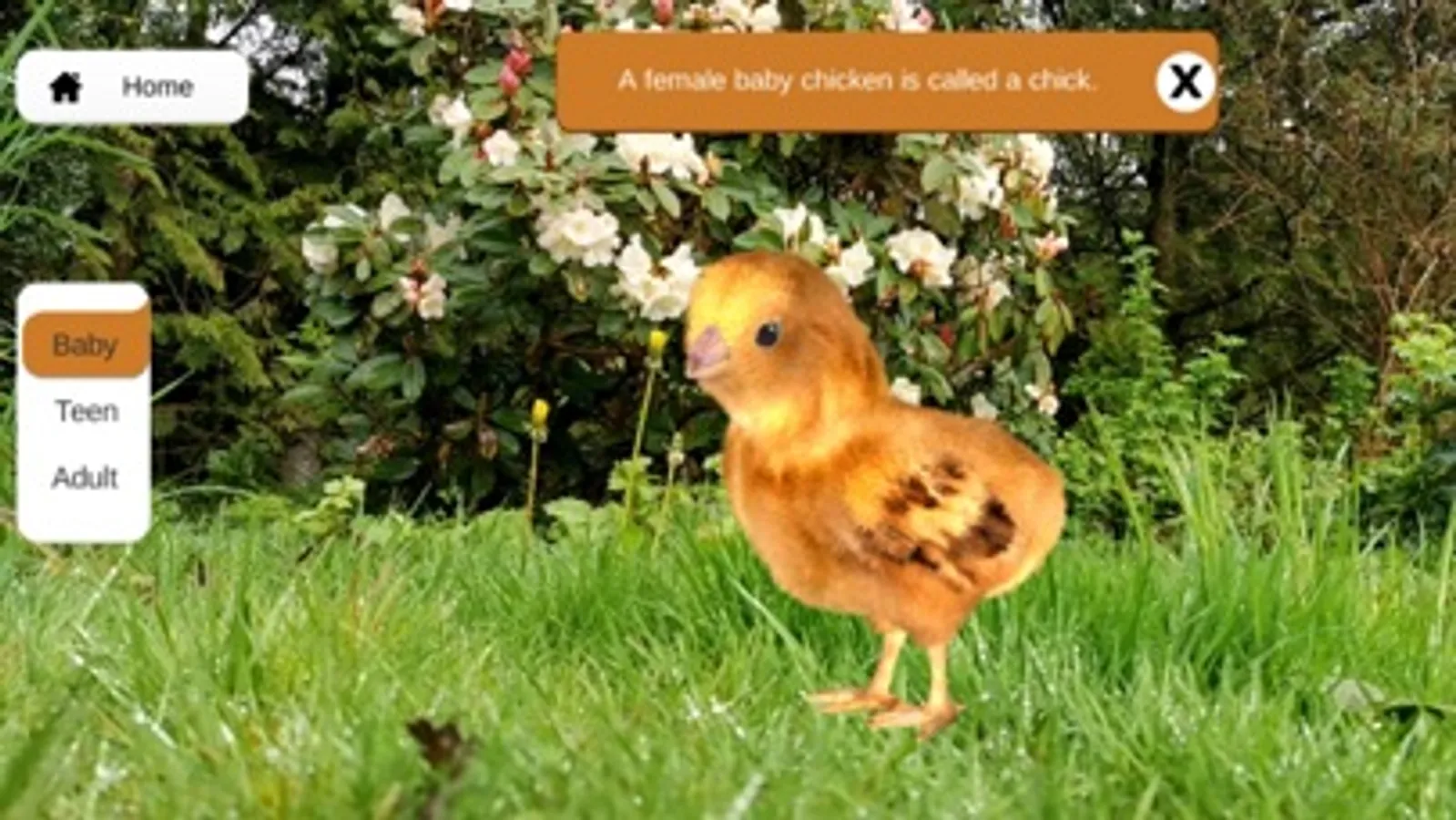 Chick It Out is an interactive and educational AR app which helps explore the egg development, life stages and anatomy of our feathered friends, chickens!