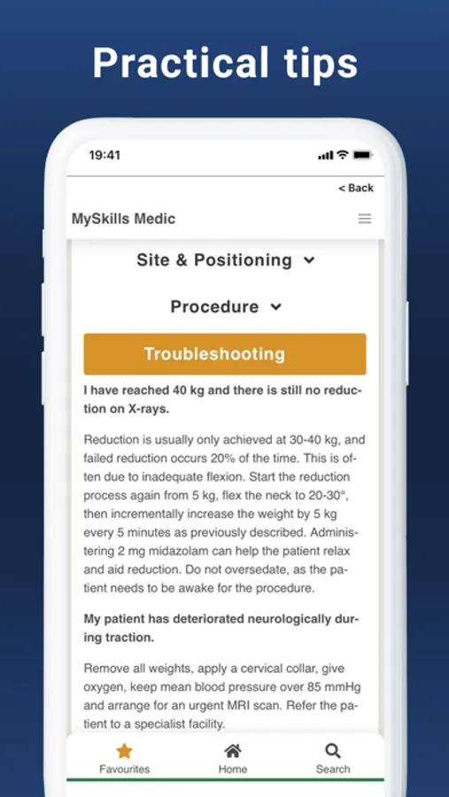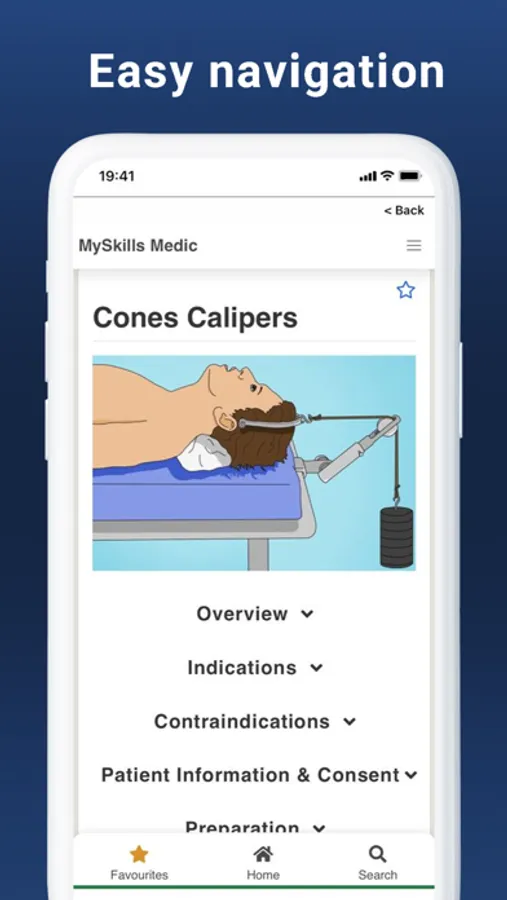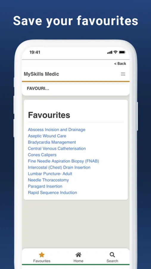 MySkills Medic app is free to download and can be used in the skills lab or at the patients’ bedside, even when internet connection is unavailable or unstable. The MySkills Medic menus, Search function, Favourites and pop-ups provide quick and easy navigation to the specific information you need, with additional links to related modules and internet resources. To ensure that the app does not use up valuable space on your mobile device, large files such as future videos will be accessible via external links.