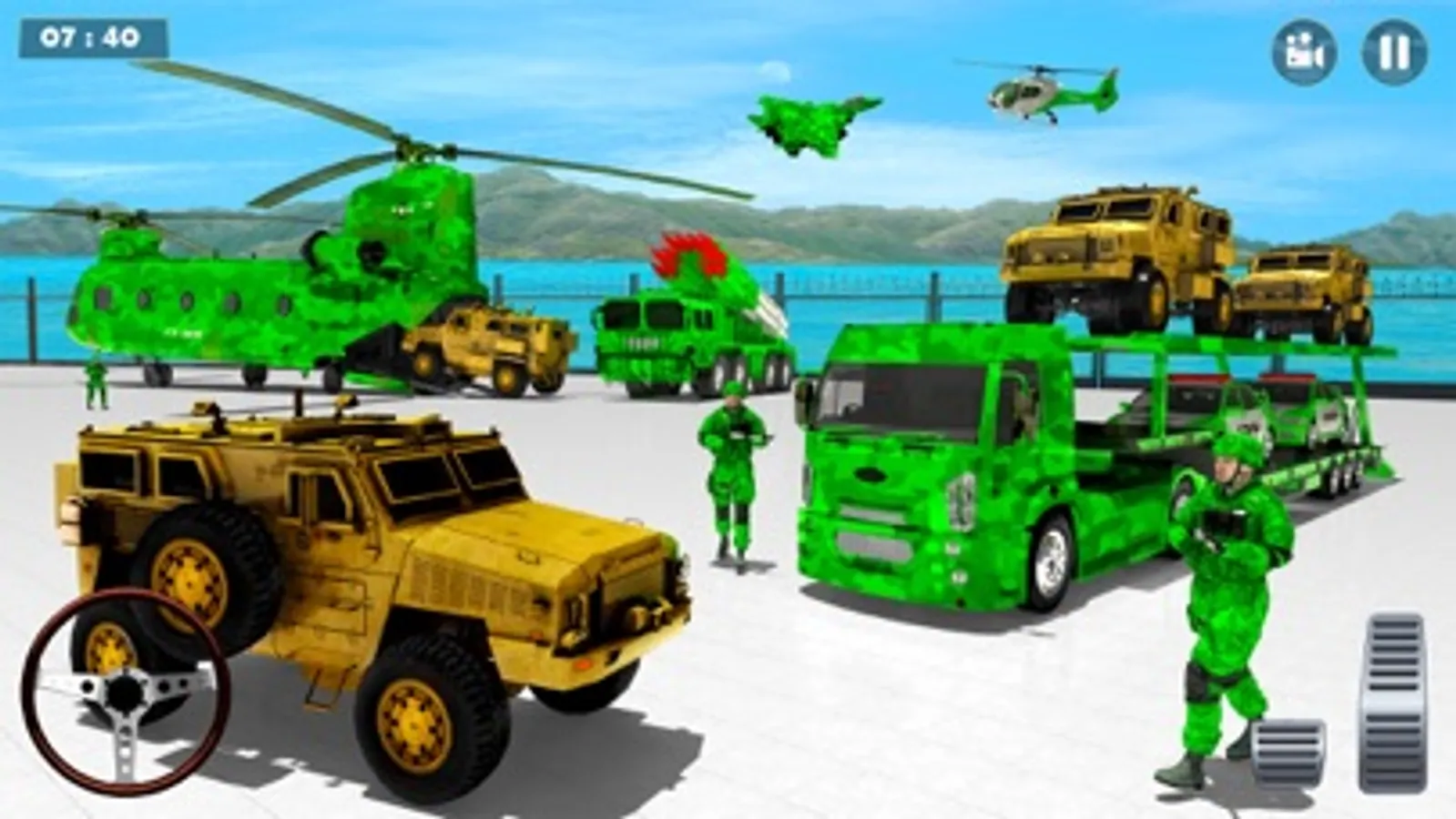 In this US Army Transport Games, load the war tanks & army cars into 18 wheeler trucks of Cargo Car Transport Games. In Army Transport Games, become the professional Army Transport Truck Simulator Driver & drive it to the cruise port of cartoon freight in this US Army Training Games. Drive Army Car Transport Truck of Army Car Games. In the Commando Games, drive military transport helicopters & Park cargo car transport truck to the military army camp of Army Transport Games. In this Army Transportation Game, your duty is to drive Army Car & US Police ATV Transport to the Car Transport Truck of Army Games. In this Army Truck Games, you have to load an Army Cruise Ship in this Army Transport Game. This military convoy, let's Drive Army Vehicle Transport Truck, & fulfil your transport games duty & become an Army Transport Truck Driver.