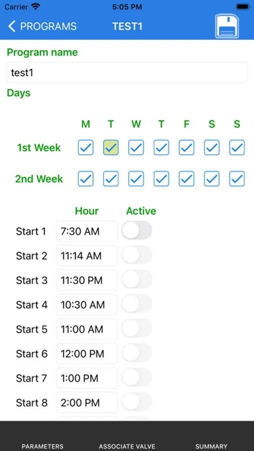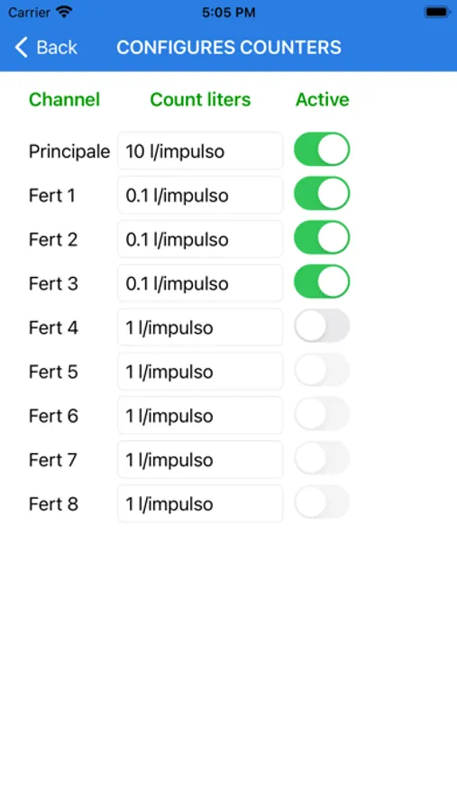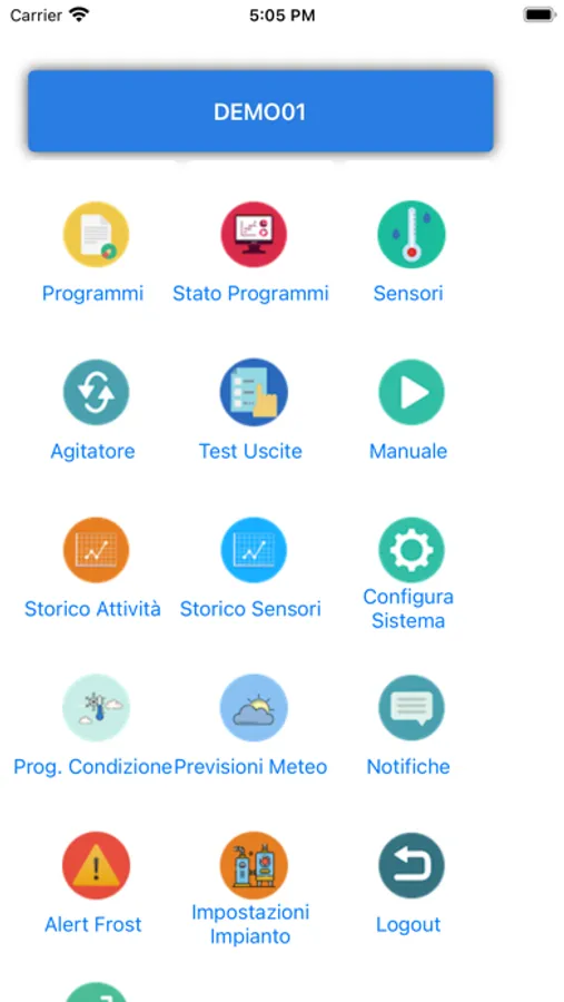 Grazie a IrriFarm i produttori possono configurare programmi di fertirrigazione manuali e automatici, monitorarne lo stato, gestire filtri, pompe, agitatori, sensori e analizzare i dati storici attraverso grafici incorporati nell'applicazione mobile.