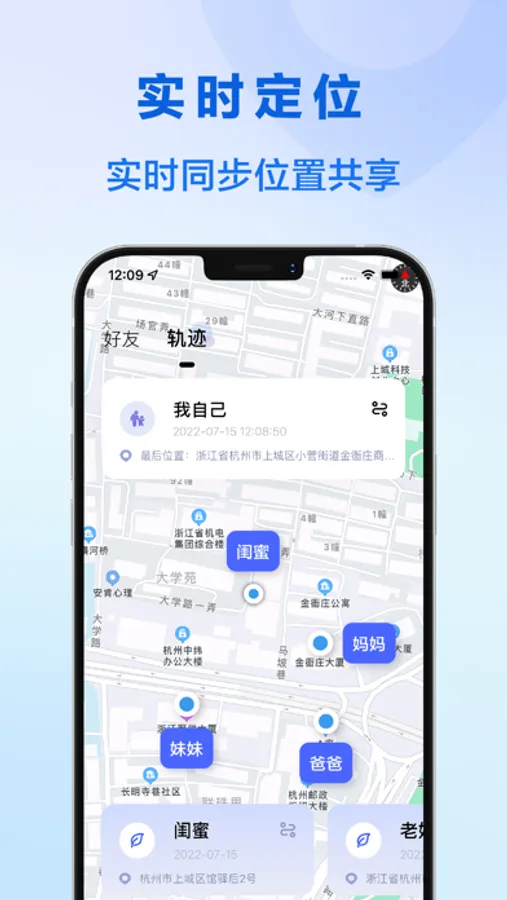 支持查看好友的历史轨迹,及时了解TA去过哪;