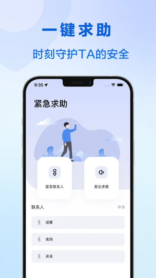 遇到紧急事件,一键求助,一键向家人发出求助信息。