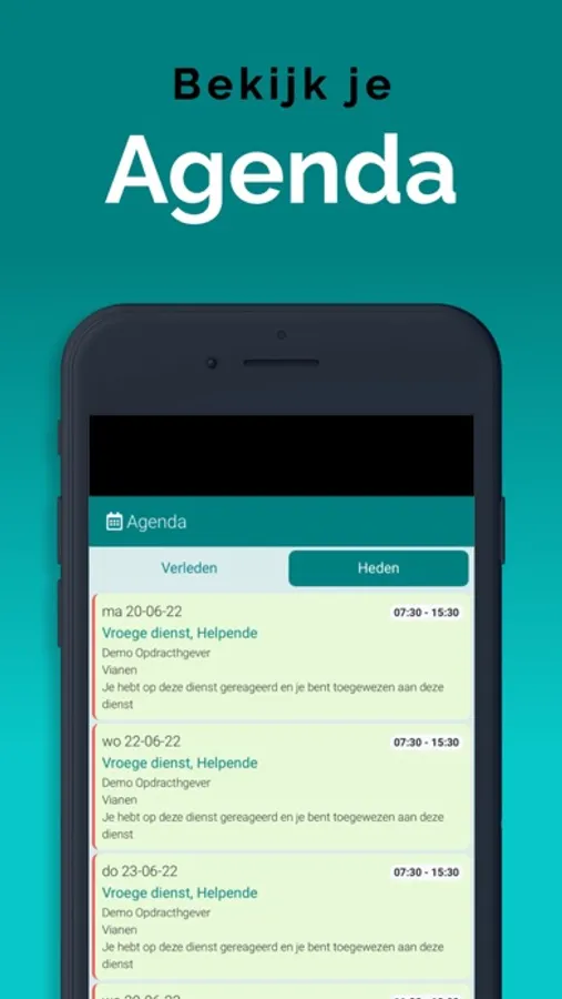 De App is gekoppeld aan het systeem waardoor informatie altijd up-to-date is, via een overzichtelijk dashboard. Bovendien komen belangrijke meldingen, als nieuw beschikbare opdrachten, via een push melding binnen op het apparaat. Zo zie je niets over het hoofd. Ook wijzigingen worden direct zichtbaar, ook in de agenda. Je bent dus altijd op de juiste plaats aanwezig.