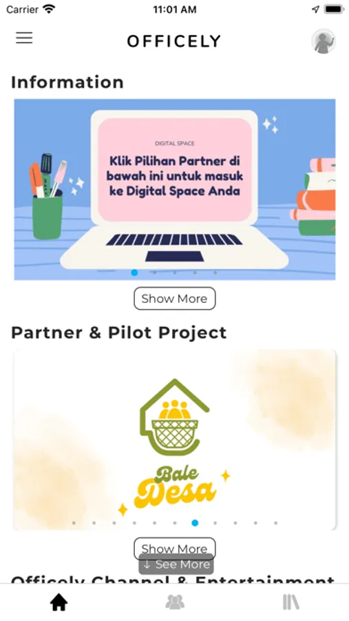 Officely is a Virtual Working Space Facilities and Company News Outlet app.