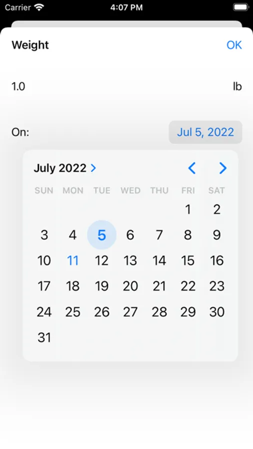 Input some weight data, the app will calculate the rest. Estimated weight will be displayed, if there is no weight given on that day.