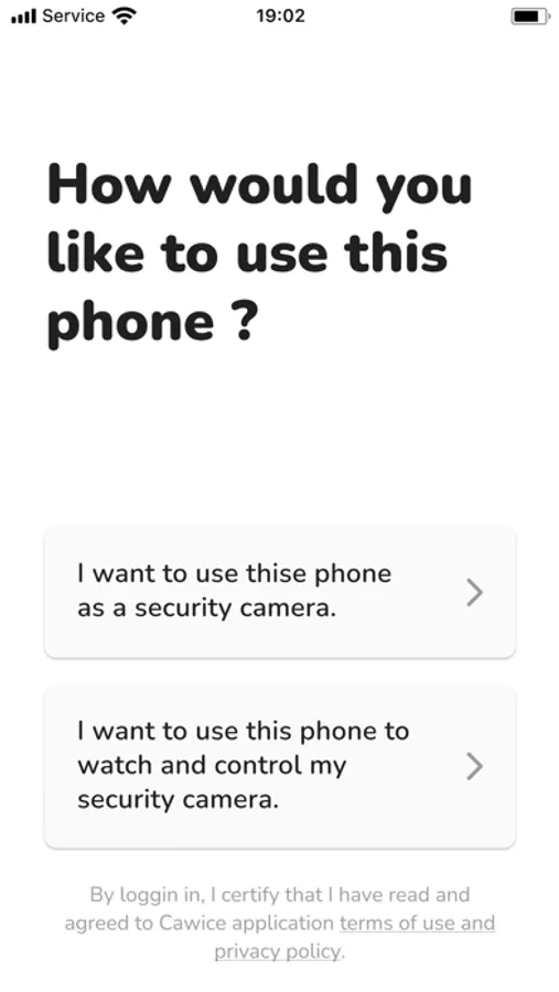 Download Cawice application on two phones and logging in with the same Google account to pair your devices. Once configured, one phone will be use as a viewer and the other as a security camera.