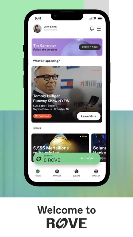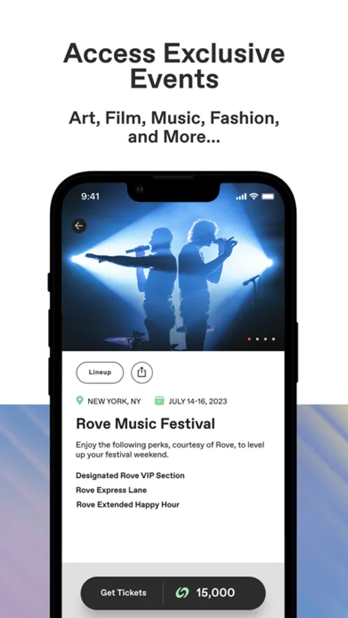 Download the Rove World app to access exclusive events, unlock custom features, earn rewards, and purchase rare digital collectibles from top artists and creators.