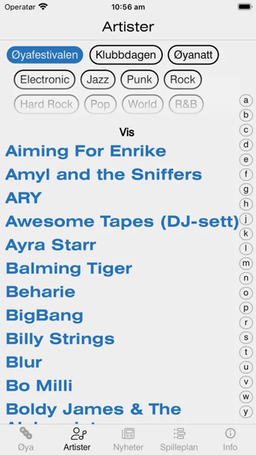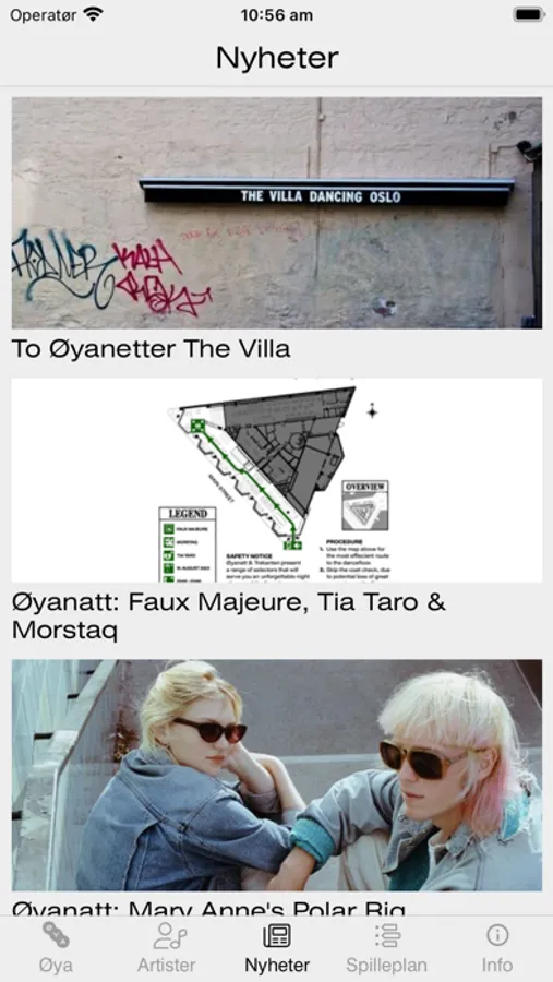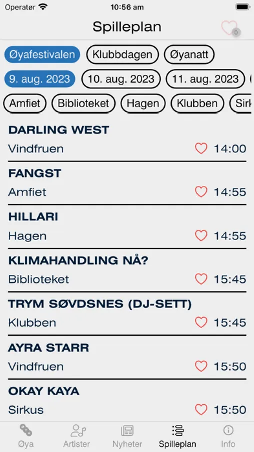 Last ned den offisielle appen for Øyafestivalen 2022 for å lese om årets artister og band – både på selve festivalen, Klubbdagen og Øyanatt – og den gode maten vi serverer; sette opp programmet ditt; motta varsel når vi slipper viktige nyheter; og for å finne praktisk informasjon om festivalen og området.
