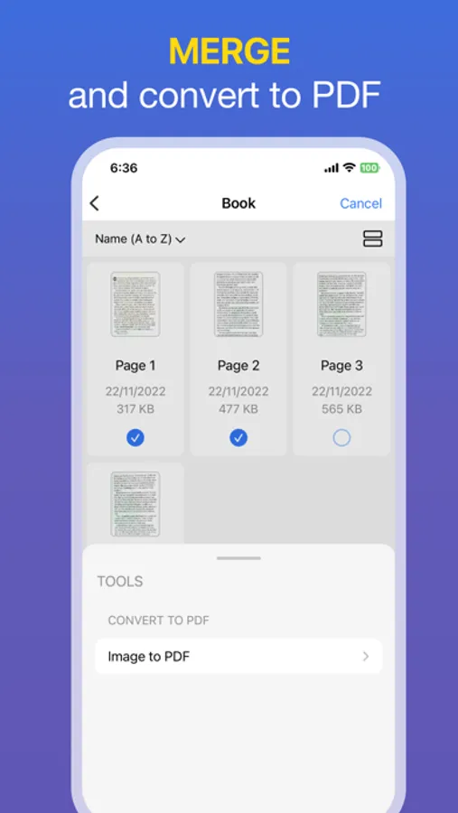 • Batch scanning - scan as many as you like and save the files as one PDF.