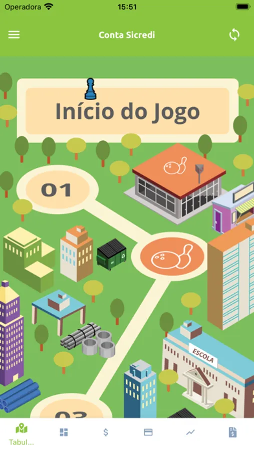 No jogo há uma persona chamado facilitador, no qual representará a instituição financeira, essa persona é responsável por adicionar despensa, realizar lançamento de crédito e débitos aos jogadores. O jogo também possui um tabuleiro que é composto por posições (bônus ou ônus) e um app para controle financeiro dos jogadores.