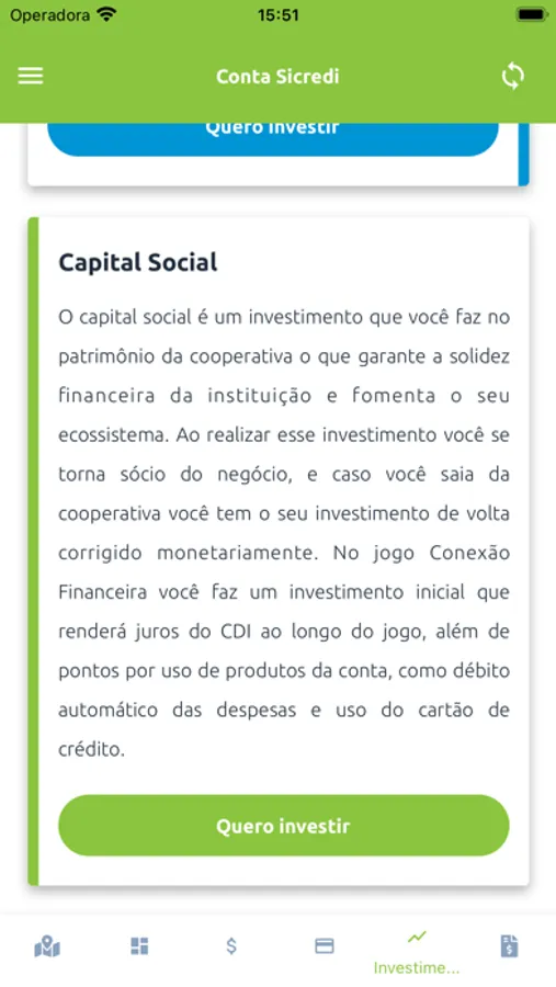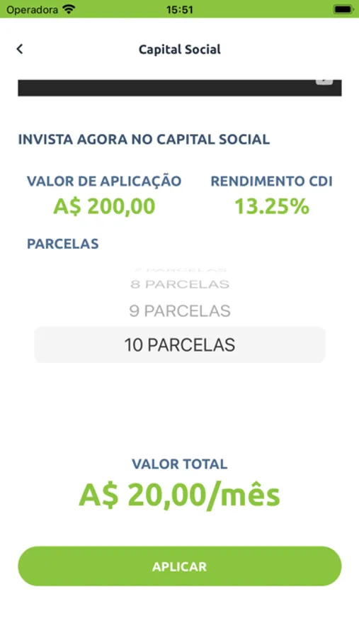 *Investimentos (Poupança, CDB e Capital Social)