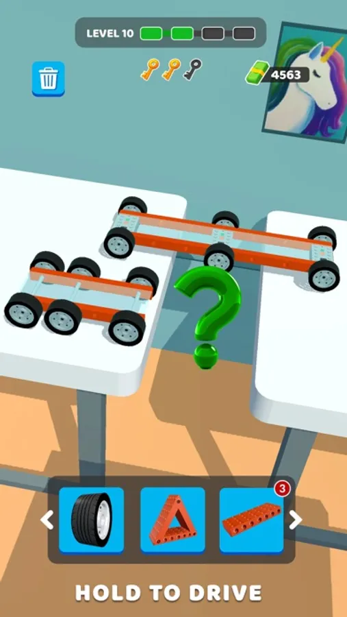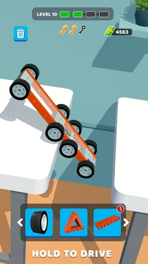 Use different tools to build up your car like tyres, body, weights and cross the bridge without falling down.