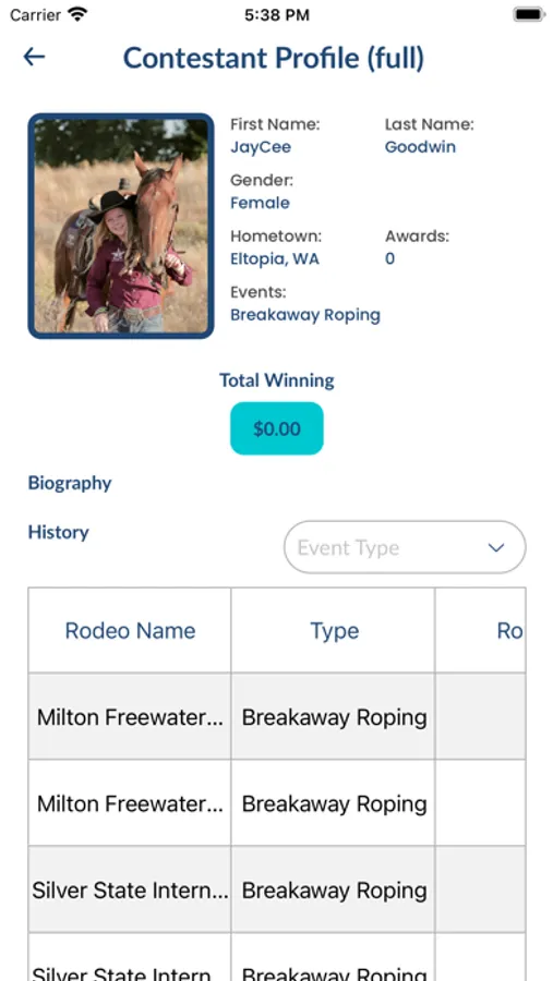 The Contestant Center app not only helps you track and analyze performances, but it also fosters an interactive community of rodeo enthusiasts. Users can take on different roles based on their subscription level. For instance, if you're a seasoned expert, you can switch to a coaching role and share your insights and knowledge with others. If you're a contestant, you can compete in rodeo events, learn from other coaches, and continuously improve your performance. This unique flexibility allows for a dynamic and enriching user experience within the app.
